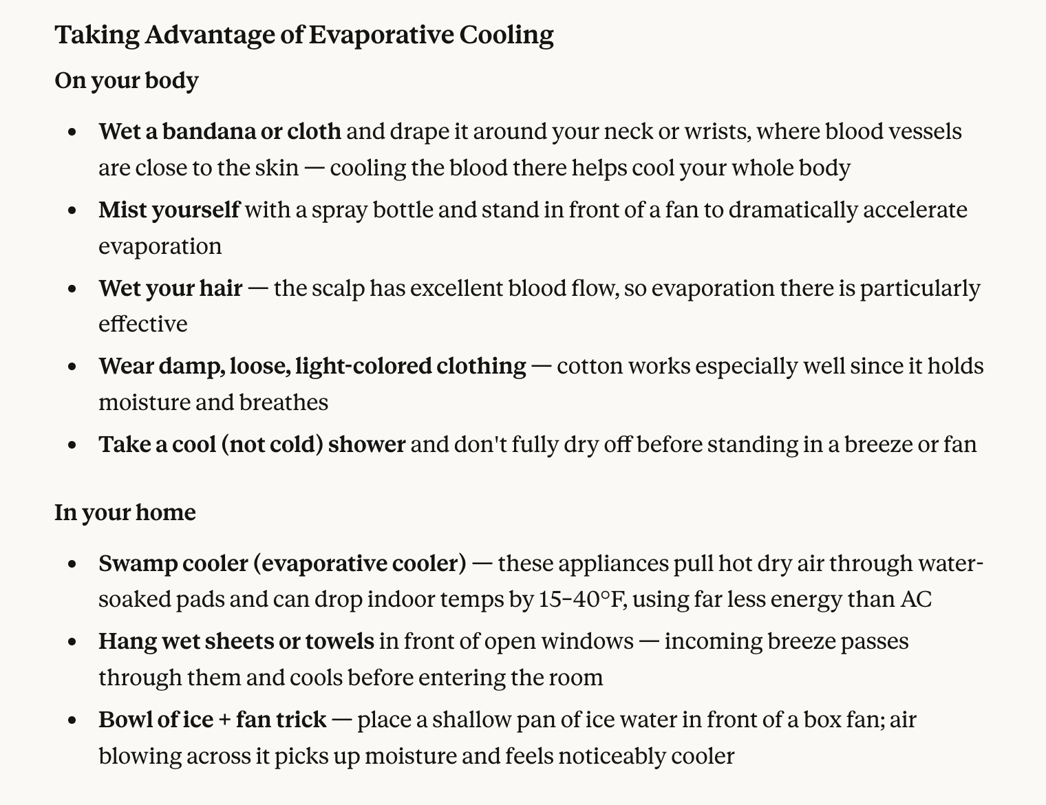 Evaporative Cooling (won't work in high humidity)