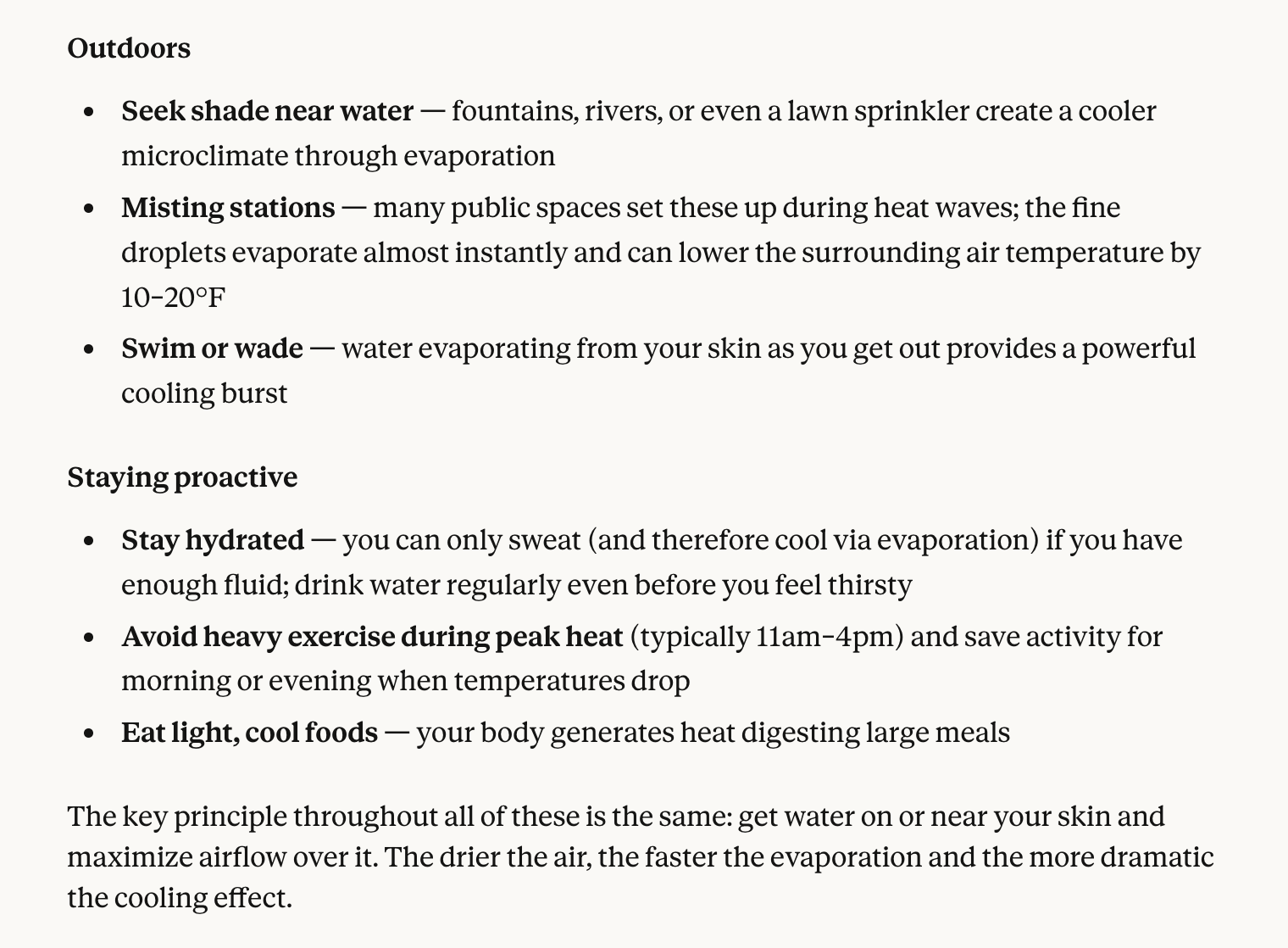 body's natural cooling methods.