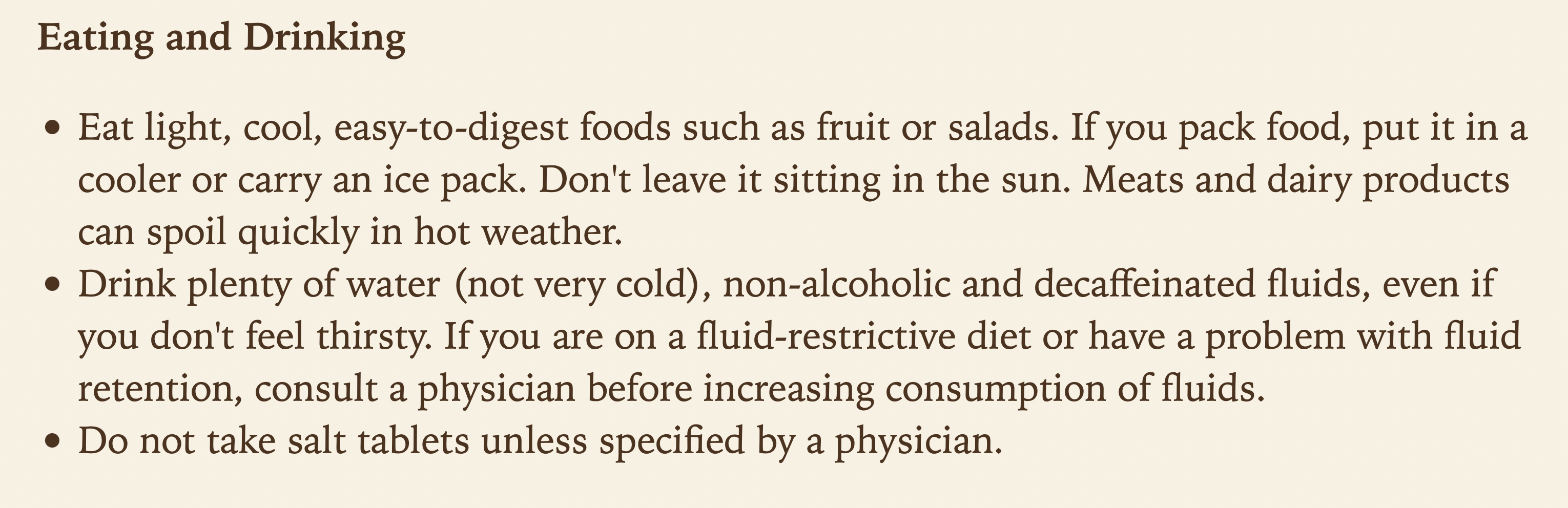 the heat, as long as you eat regular meals to replace salt
