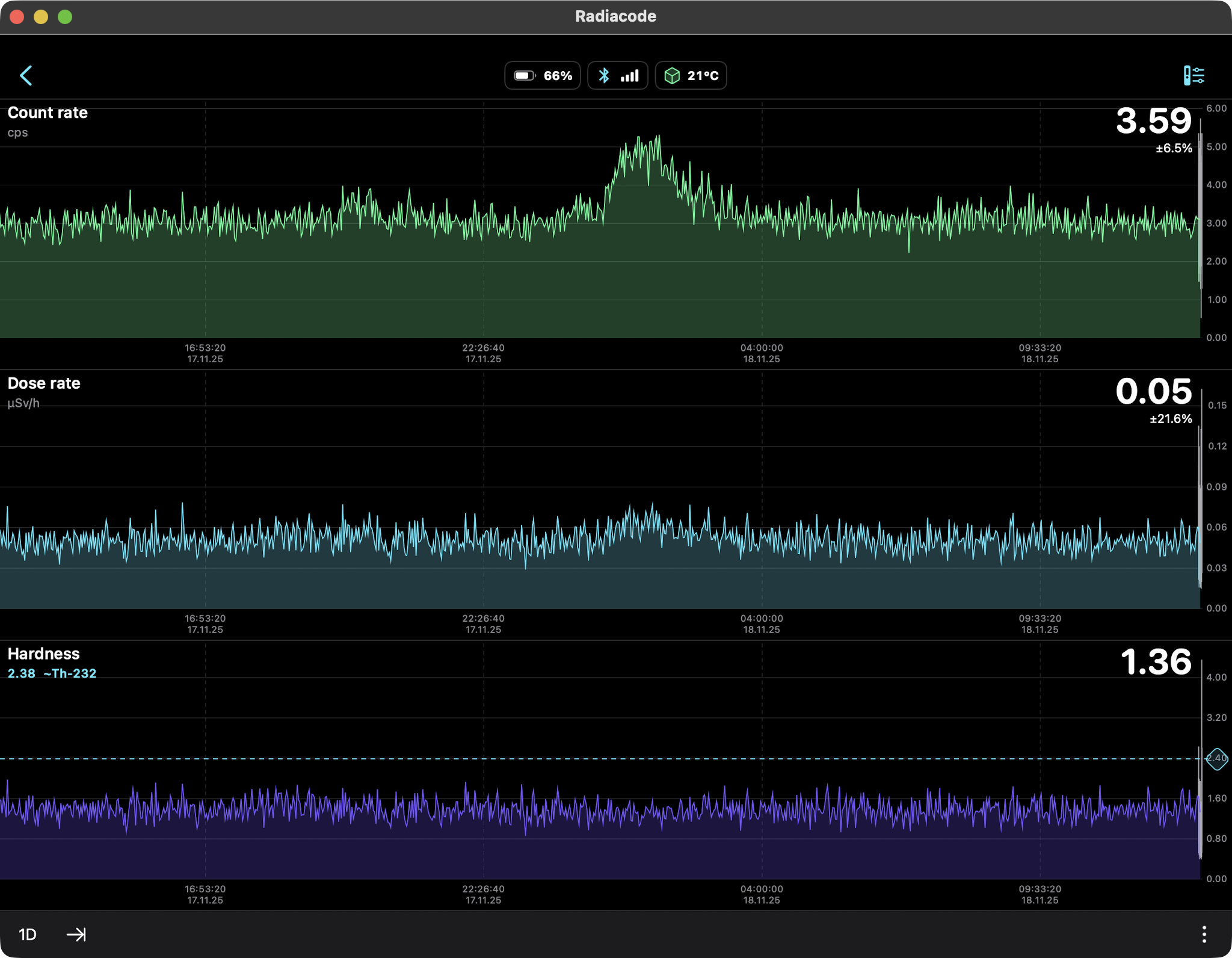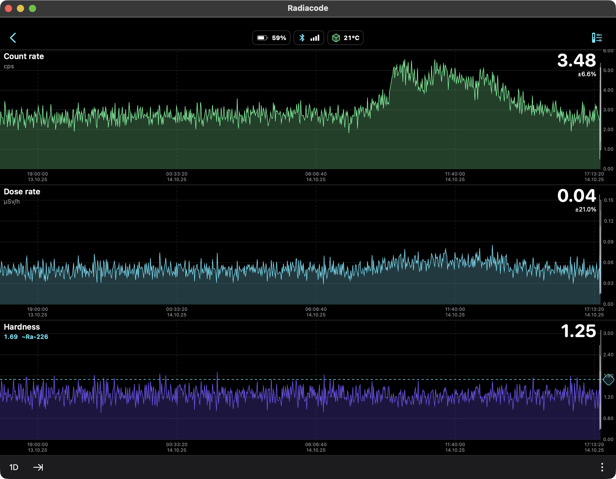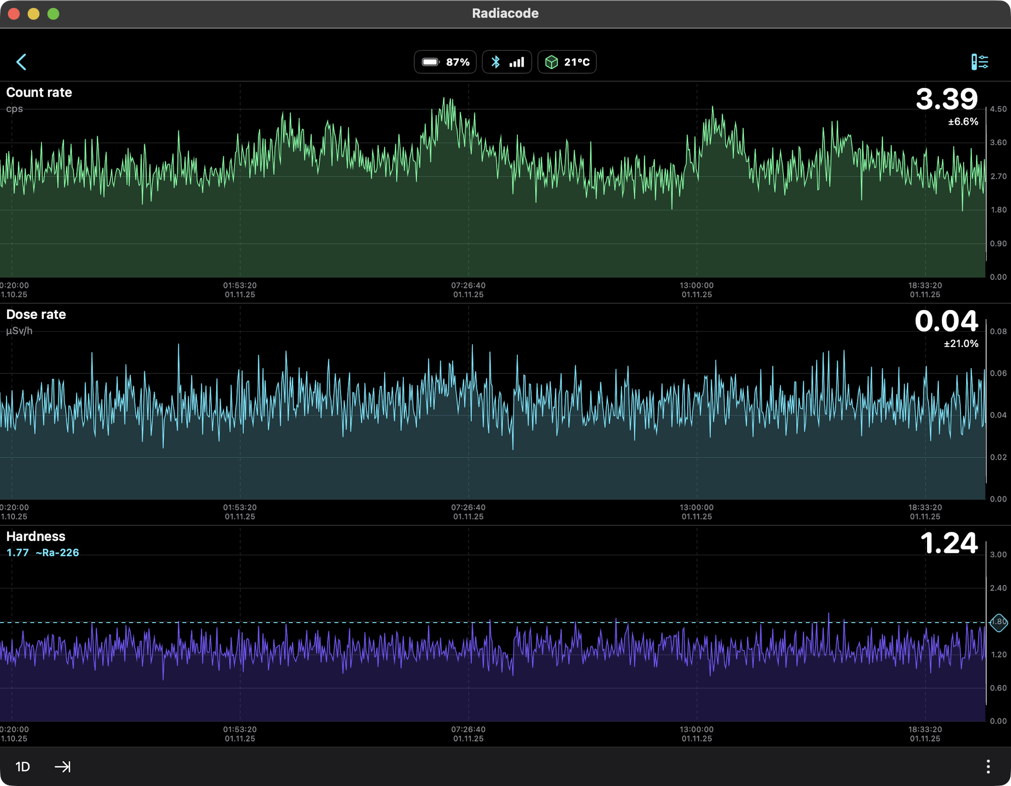 the Radiacode 103G measured a dose rate of 0.44 µSv/h which